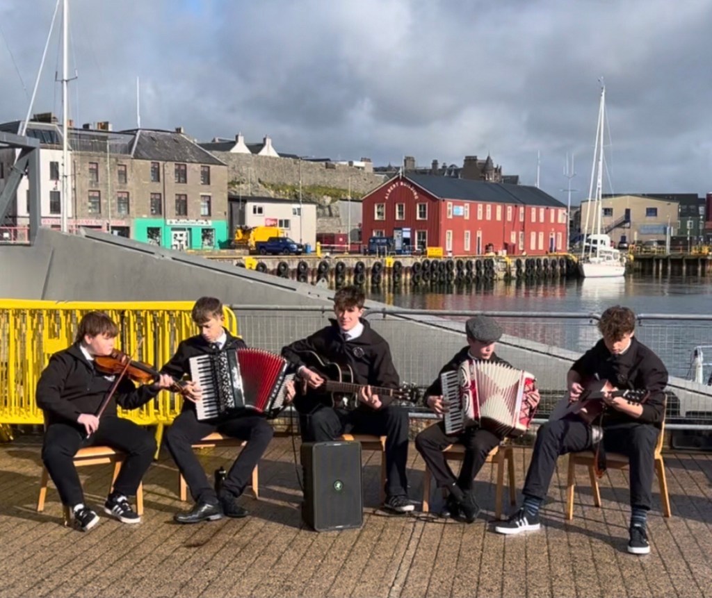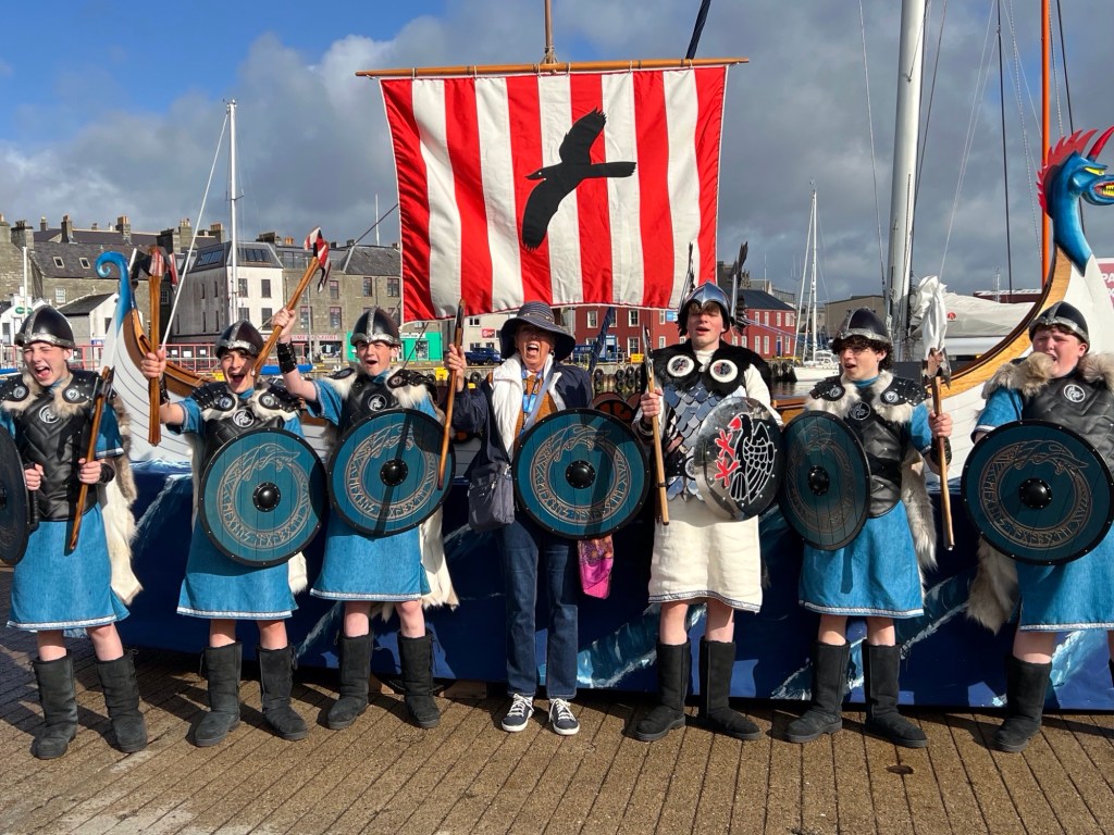 When we got off the dock in Lerwick, the main town of the Shetland archipelago, we were greeted by a group of high school students. Some were musicians and others were dressed up as Vikings.